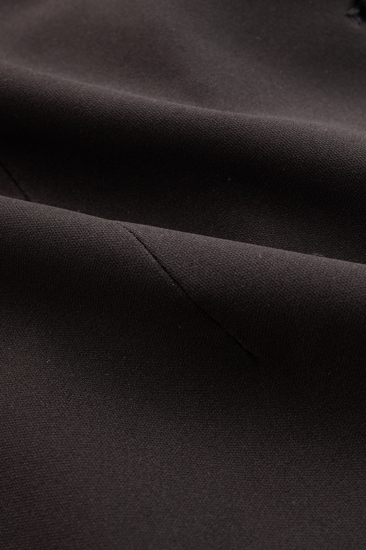 • Unique asymmetrical button detailing runs from the waist down the skirt, adding a contemporary, avant-garde twist to the traditional blazer design.